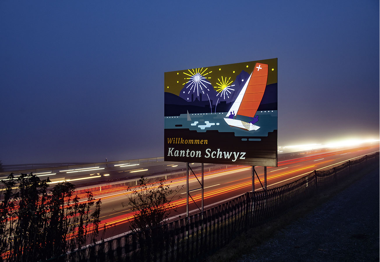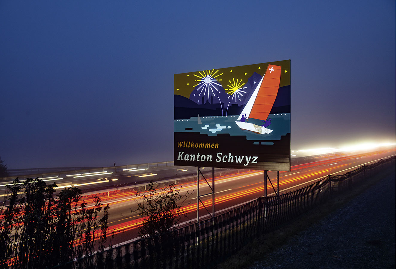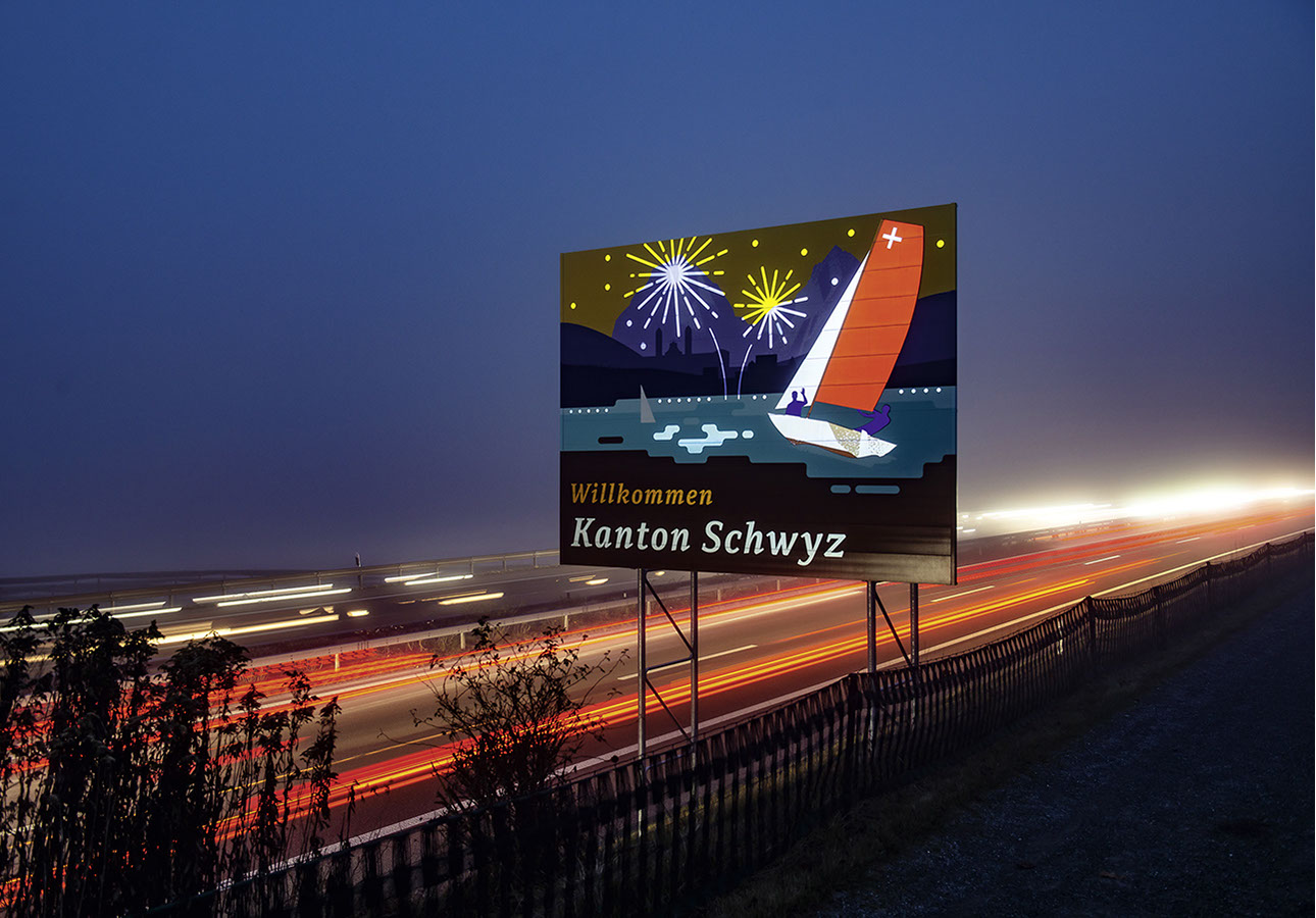 Signaletik: Touristische Autobahn-Signalisation im Kanton Schwyz